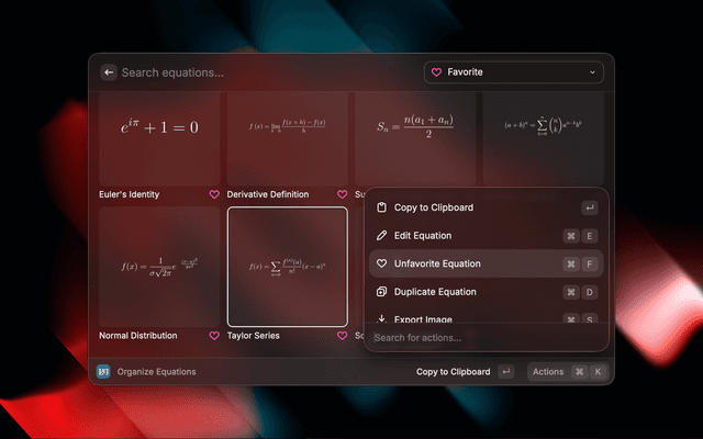 A LaTeX-friendly clipboard tool for creating, organizing, and copying equations.