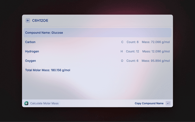 Calculate the Molar Mass of any compound. (Ex: H2O, C6H12O6, etc.)