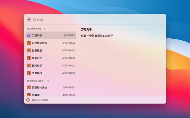 Template Store: Add and manage all preset templates here.