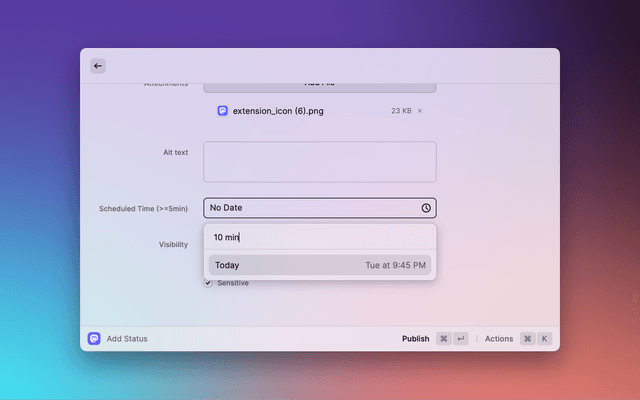 • Publish scheduled status with natural date format.