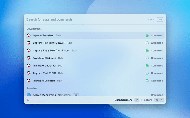 Control the Bob Translate app for macOS with your keyboard.