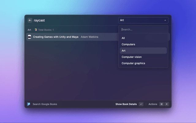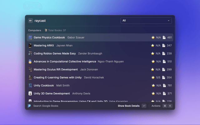 Make sure Raycast is installed and go to https://www.raycast.com/aparandeh/google-books