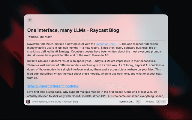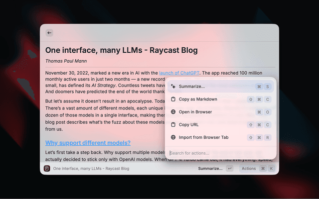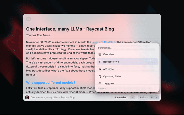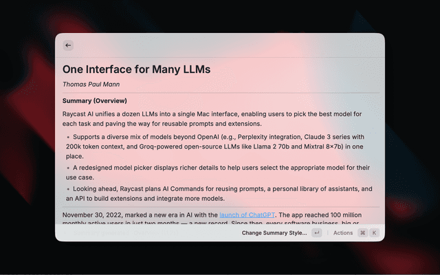 • AI Summaries - Multiple summary styles powered by Raycast AI