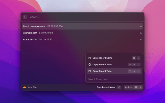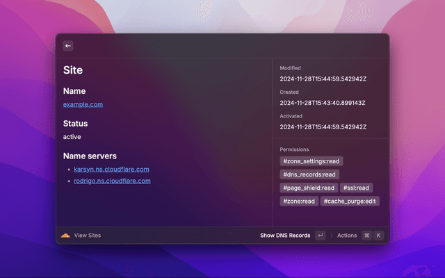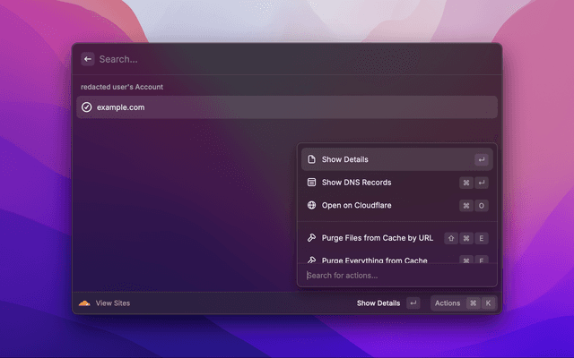Search and view your Cloudflare sites, pages, domains, and more