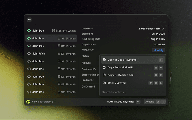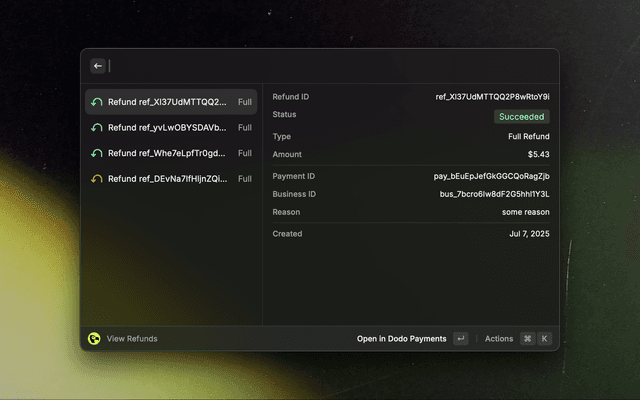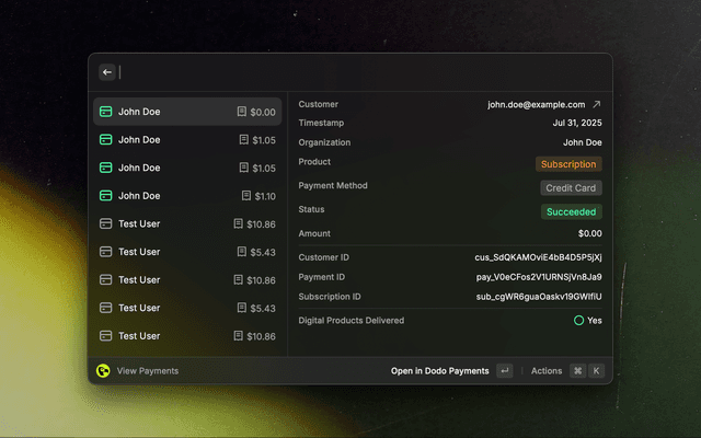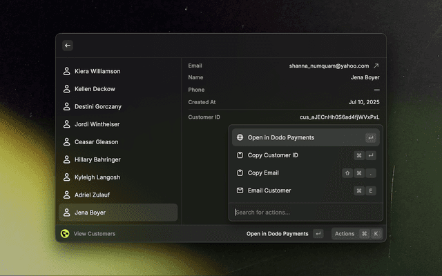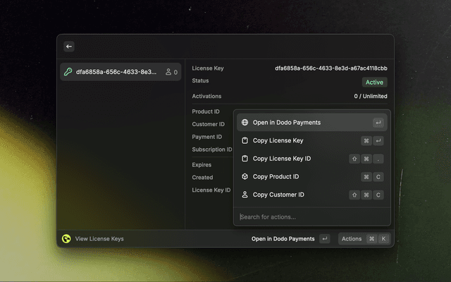 Your very own Dodo Payments dashboard, just a few keystrokes away.