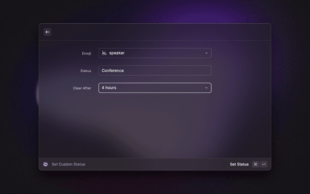 • Get and set custom user status with emoji + title + expiration date