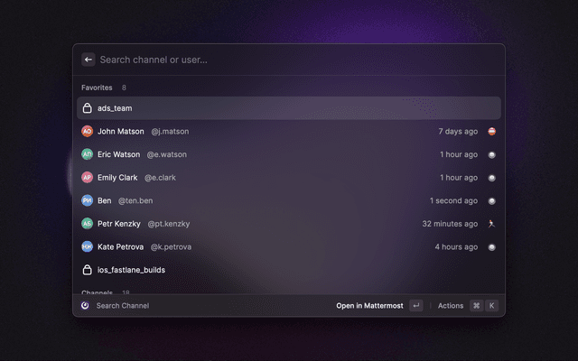 • Open chat in Mattermost app (note: require preliminary opening)