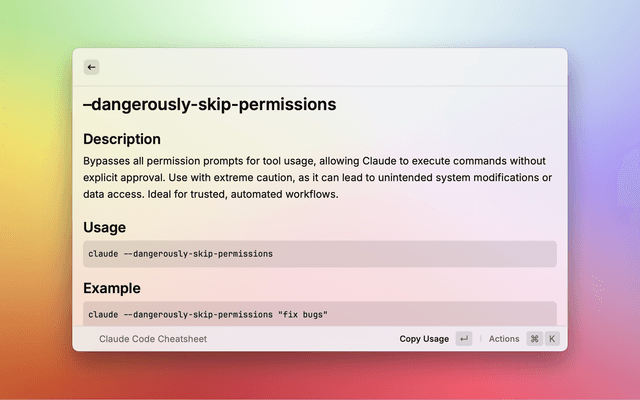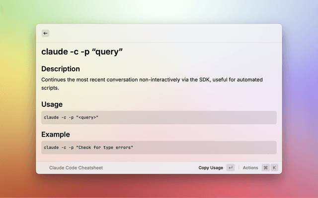 • Instant Search: Quickly find any Claude Code command, option, or keyword.