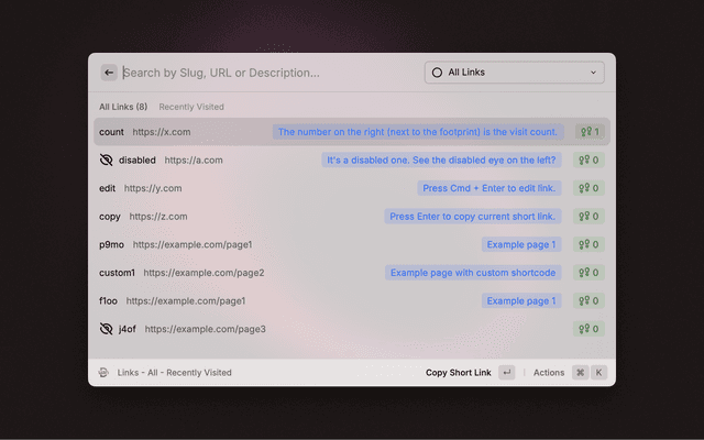 • ⌘ Enter - Copy short link to clipboard