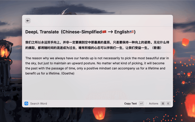 Easily look up words or translate text, support 48+ languages, support Linguee and Youdao dictionary, support OpenAI, DeepL, Google, Bing, Apple, Baidu, Tencent, Volcano, Youdao and Caiyun translation.