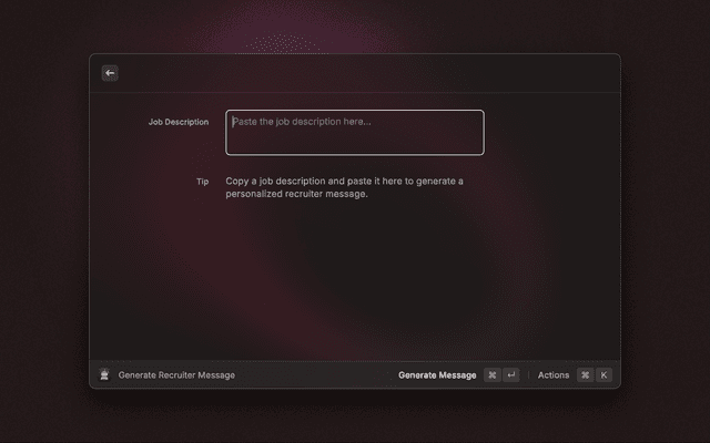AI-powered interview assistant for Raycast. Ask questions, generate recruiter messages, and create LinkedIn connection templates.