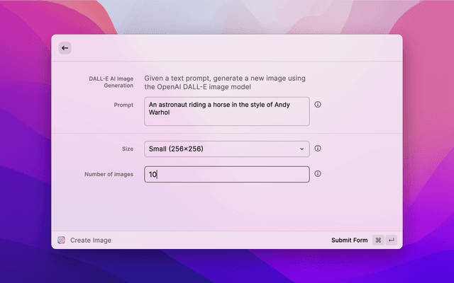 The OpenAI Generator extension uses the OpenAI Image Generation API — colloquially known as DALL·E 2 — and the Text Completion API to generate results from a text-based prompt.