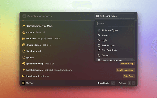 A comprehensive Raycast extension that provides seamless access to your Keeper Security vault directly to your macOS desktop. Manage records, generate secure credentials, and access your vault records without leaving your workflow.