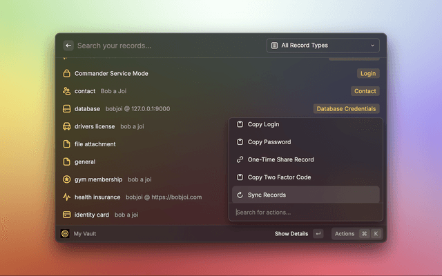 • Sync Records – Fetches the latest vault records from the server