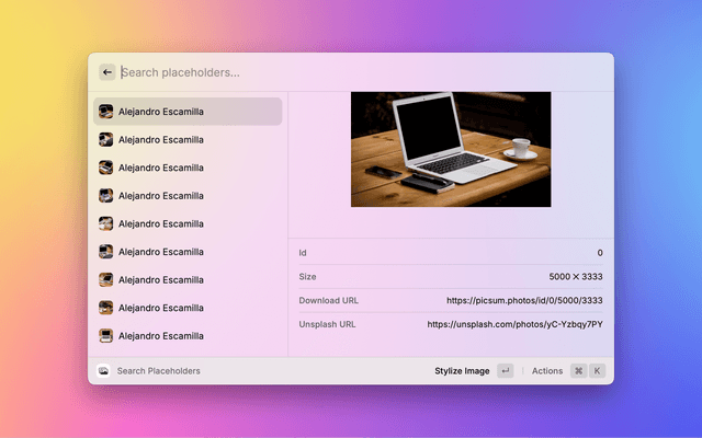 • If you find an image you like in the Search Placeholder Image command, you can use the Set Desktop Wallpaper action to set it as your desktop wallpaper.