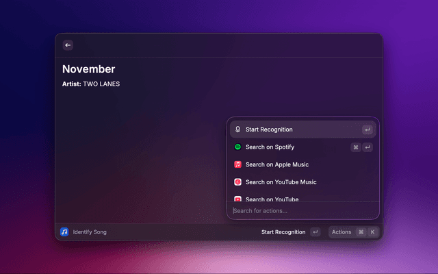 1. Run the Identify Song command in Raycast.