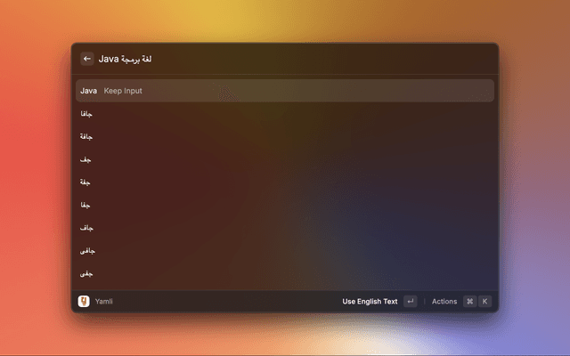 Convert English-Arabic transliteration to Arabic text using Yamli
