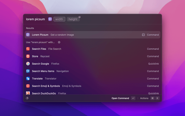 Raycast AIRaycast NotesRaycast FocusClipboard HistoryWindow ManagementSnippetsFile SearchQuicklinksCalculatorCalendarSystemEmoji Picker