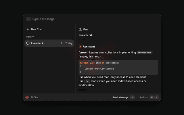 • Actions: Copy, Paste, Continue in Chat