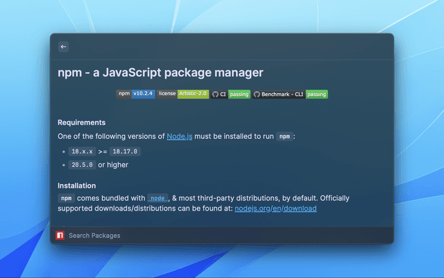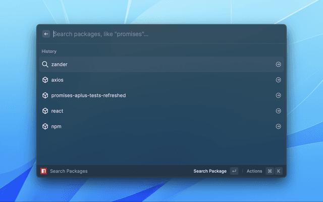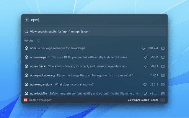 • choose the default "open" action for a package: "open repository", "open homepage" or "open npm package page" or "open Skypack package page"