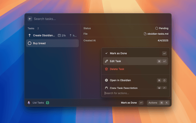 Manage your Obsidian Tasks through Raycast