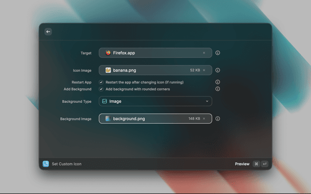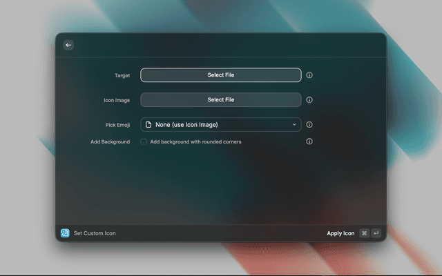 • Use an image or an emoji, add a custom background (color, gradient, image or default folder icon)