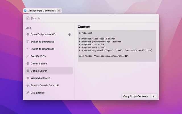 Use the Create Script Command command to generate a new script command, then change the @raycast.mode value to pipe.