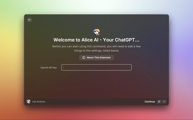Before you start using Alice AI, you need to set up your OpenAI API key: