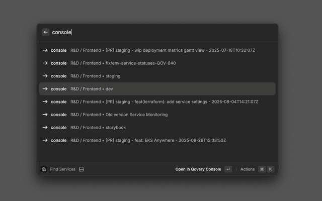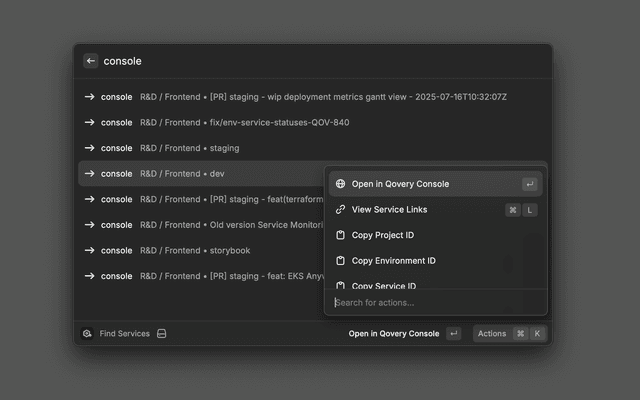 This Raycast extension displays all services from a Qovery organization with dynamic credential management.