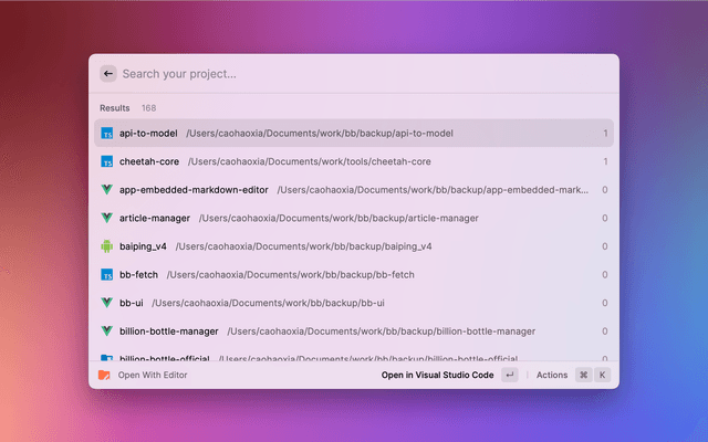 The tool will search for projects in the working directory you set, with multiple directories separated by commas, Need to configure the absolute path of the directory, This directory should contain projects managed with Git.