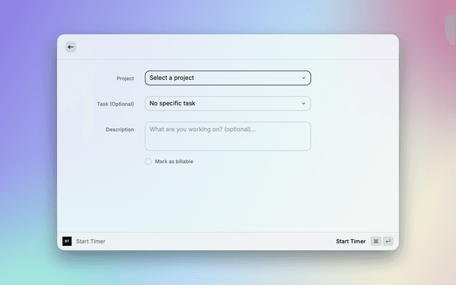 - Edit Timers - Modify existing timer entries (start/end times, project, task, description)