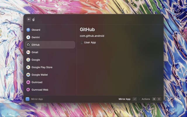 • tell application "AirSync" to mirror app "package_name" - Mirror specific app