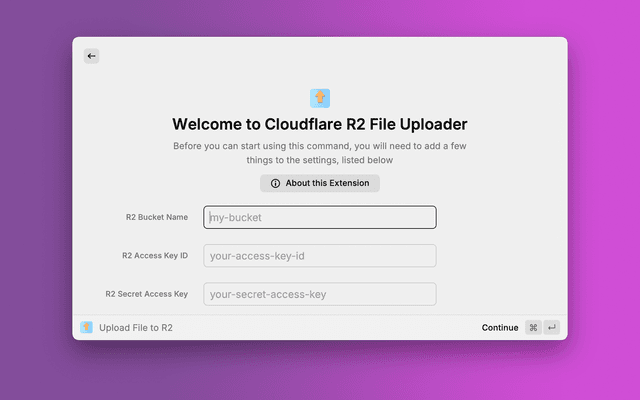 2. Open Raycast Preferences > Extensions > Cloudflare R2 File Uploader