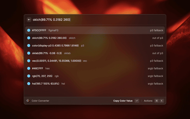 • Wide gamut (p3, oklch, oklab)