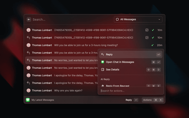 A great companion for Raycast users using the Messages app.