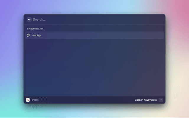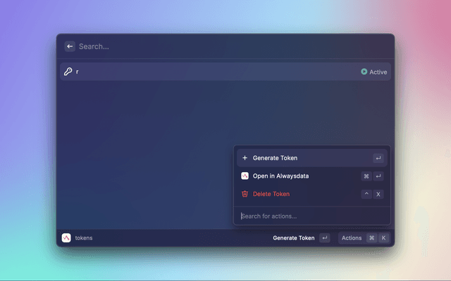 Navigate to TOKENSClick "Generate a token"Enter "Application" e.g. raycast-alwaysdataClick "Submit"Copy the token and Paste in Preferences or at first promptLooking for more infra extensions? Try the following: