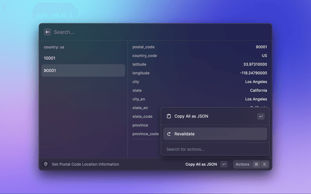 Zipcodebase Raycast Extension