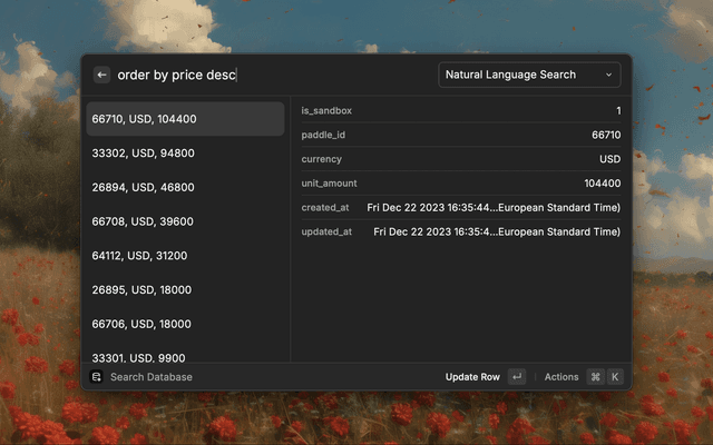 • Filter database rows with natural language search, using AI to generate the Sql query